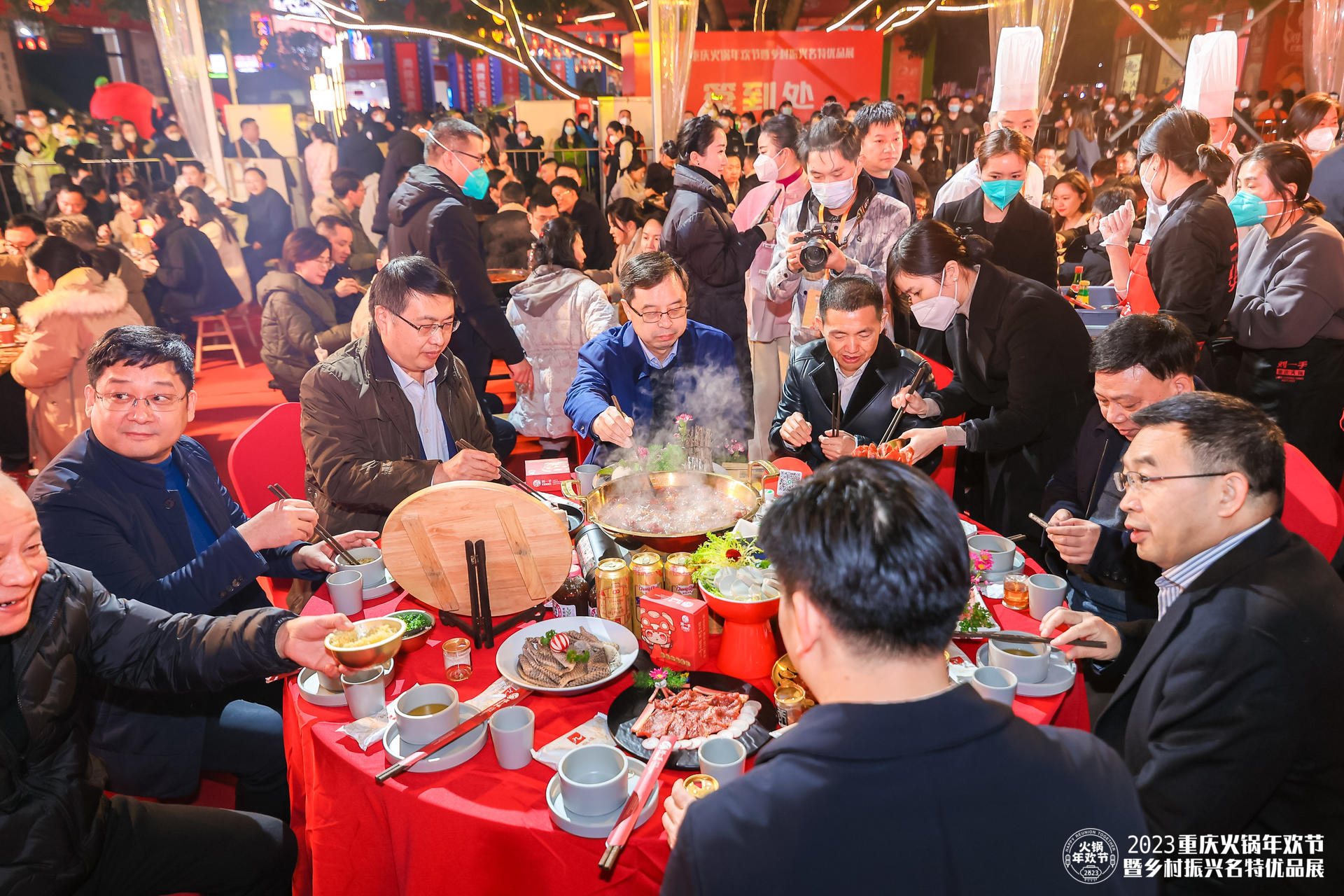 年歡節現場將集結德莊、小天鵝、劉一手、周師兄、周君記、豪渝等20家重慶知名火鍋品牌現場開啟百桌火鍋,千人同燙的壯觀場面,市民朋友們可挑選喜愛的火鍋品牌現場開燙。各火鍋品牌將根據自身特點,從主題設計、菜品搭配、創意擺盤等角度,圍繞“團圓”主題進行團圓宴席創作,為市民朋友們獻上一場絕妙的火鍋美食文化盛宴。此外,為了助推鄉村振興,來自九龍坡、江津、酉陽、豐都、南川、城口、梁平、合川等各區縣,將攜名特優新農產品、區縣特色美食、地標性農產品在現場打造出有年味、有情味、有趣味的鄉村振興名特優品展,上千款爆品年貨一站式便捷采購,點燃居民消費熱情。本次活動結合市民歲末團聚和新春團圓的寓意,融合年俗、年味、年禮、年歡、年趣,因時制宜打造重慶火鍋年歡節暨鄉村振興名特優品展,旨在進一步做好火鍋產業復工、復產以及復蘇工作,幫助企業紓困解難,提振消費信心、提升消費潛力、助推鄉村振興。